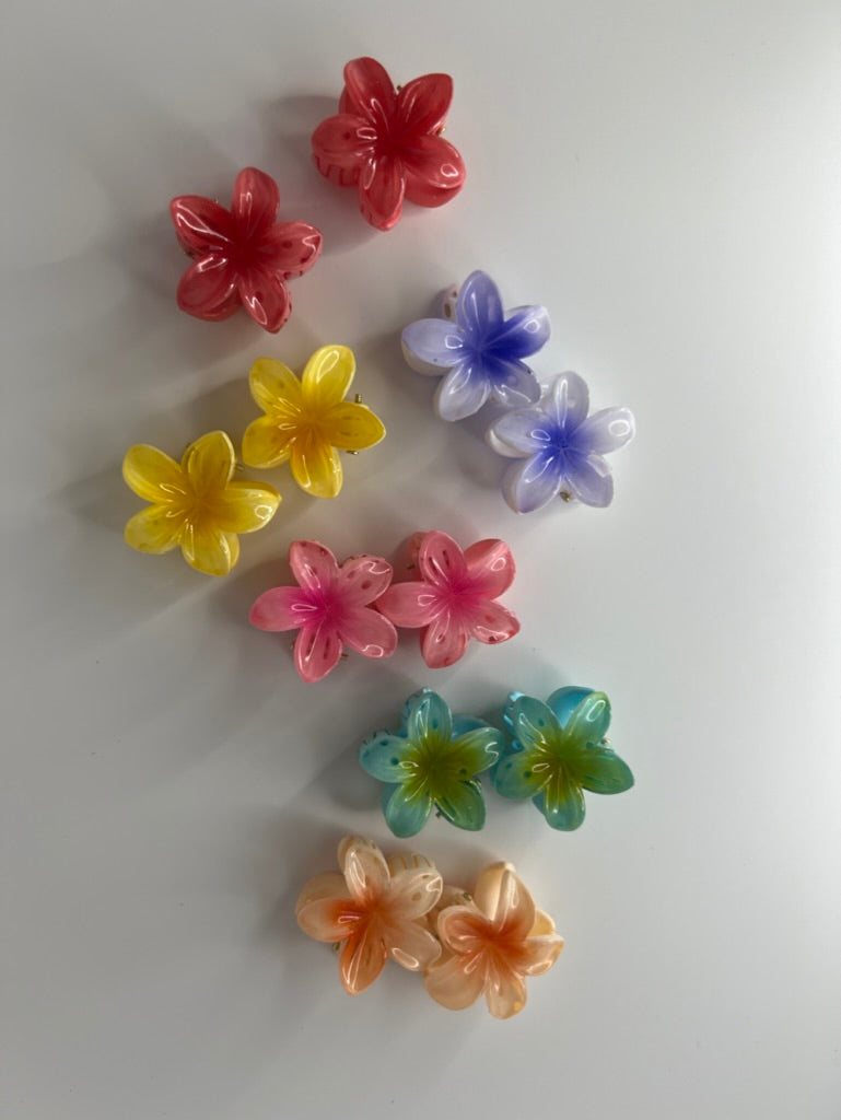 - Two flower hair clips (colour randomly selected, but will be same colour for both clips)